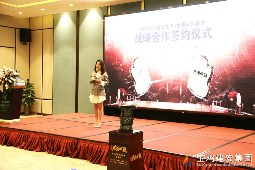2019年3月21日,寶雞建安集團股份有限公司和湖南電視臺先鋒乒羽頻道在寶雞海棠度假酒店,正式簽署了雙方戰略合作協議,雙方將攜手打造羽毛球精品賽事、助力羽毛球市場化進程、打破羽毛球專業運動員和業余運動員壁壘,積極推進羽毛球在西北地區的普及和發展。