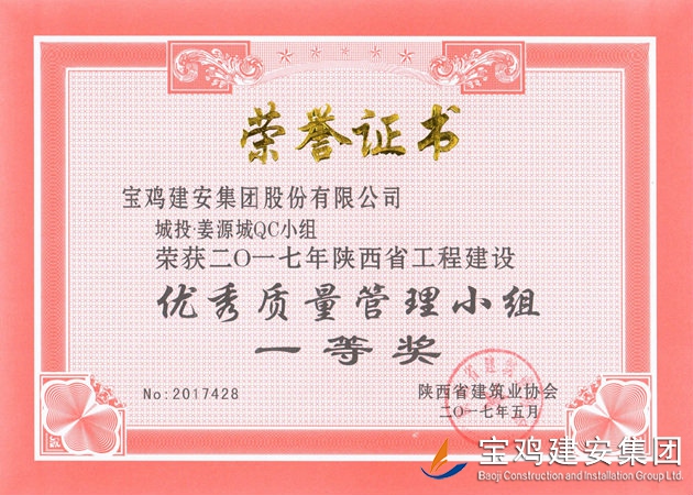 城投姜源城QC小組 一等獎
